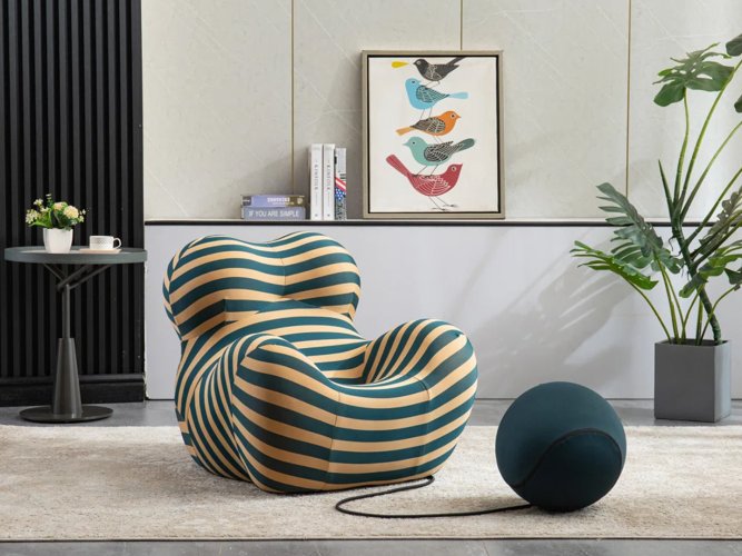 Modern Şerit Desenli Ana Kucağı Tasarım Koltuk ve Puf Seti